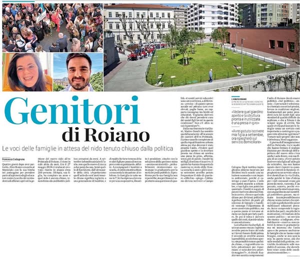 1 – Il Comune realizza una nuova struttura: un asilo moderno nel cuore di Roiano, bellissimo, progettato nei minimi dettagli grazie al contributo delle competenze pedagogiche presenti all’interno dell’amministrazione comunale